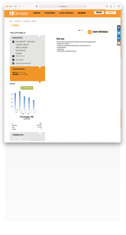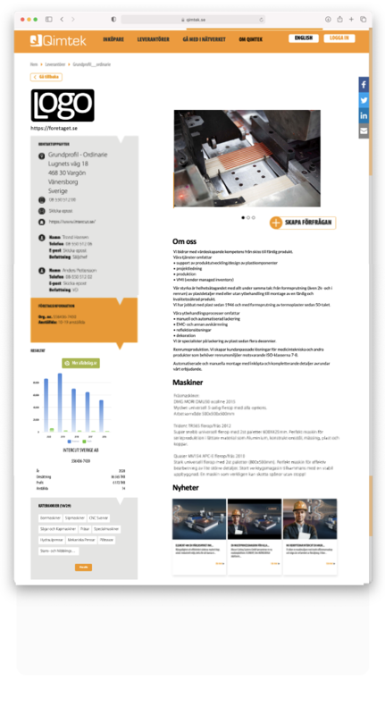 Kostnadsfri företagsprofil som leverantörer erhåller med automatik då vi adderar dessa till i vårt register