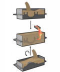 Tillverkningsmetod där ett visköst material tillsätts i en gjutform där det stelnar. Gjutformen avlägsnas därefter för att frilägga den färdiga produkten.