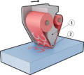Hot stamping Process Color Labeling processing where paint is transferred from an ink ribbon to the workpiece by a selectively heated press.