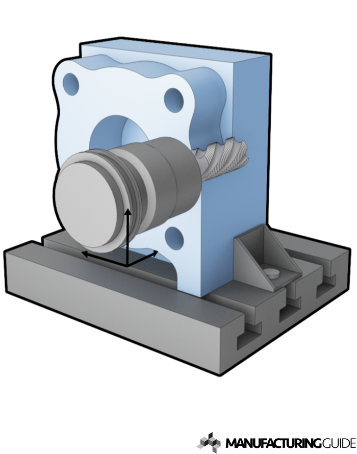 3-axlig fräsning där arbetsstycket bearbetas av ett horisontellt roterande fräsverktyg med styrd förflyttning längs X, Y och Z Beskrivning Hur fungerar metoden Vid 3-axlig fräsning spänns arbetsstycket upp på ett plant bord och bearbetas horisontellt av roterand fräsverktyg som finns in en mängd olika utförande. Verktygets X, Y och Z-positin styrs av av ett CNC-program där en eller flera axlar kan styras simultant och låta verktyget avverka arebtsstycket genom spånbrytning. Uppspänningen i kombination med endast tre axlars förflyttning ger en begränsad möjlighet till bearbetning av flera sidor utan att behöva vända på och spänna upp arbetsstycket på nytt. Många styrda maskiner har integrerat system för automatiserad verktygsväxling vilket minskar ställtider avsevärt. Dessa benämns vanligtvis som fleroperationsmaskiner. Fräsverktyg Ett verktyg med fasta eller utbytbara skär som genom rotation och förflyttning avverkar materialet genom spånbrytning Läs merSpånbrytning Det sätt en spåna bryts av Läs merVerktygsväxling En maskin som utrustas med automatiserad verktygsväxling ger kortare ställtider vid byte av verktyg vilket avsevärt kortar ned tillverkningstiden i de fall flera olika verktyg behöver användas. Läs mer Horisontell fräsning Horizontal milling