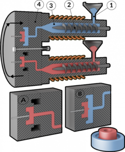 Formsprutning är den vanligast förekommande tillverkningsmetoden för formgjutna plastdetaljer.