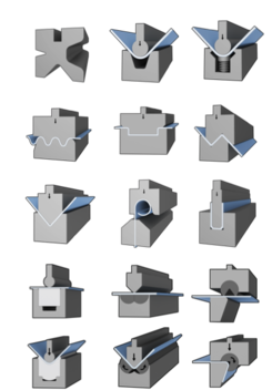 Kantpressning med robot nyttjas för automatiserad bockning av plåt genom pressning mellan två verktyg. Beskrivning Hur fungerar metoden Kantpressning med robot utförs genom att arbetsstycket placeras av en robot ovanpå det undre verktyget, dynan [1]. Det övre verktyget, stansen [2], sänks och deformerar arbetsstycket genom en pålagd presskraft vilket leder till plastisk deformation. En mängd olika kantpressverktyg finns tillgängliga för att åstadkomma många deformningar av olika typer av arbetsstycken. Då bland annat presskraft och pressdjup är viktiga parametrar som påverkar det slutliga resultatet så är dagens kantpressar vanligtvis CNC-styrda och som i detta fall även robotassisterad för maxial repeterbarhet och minimal manuell hantering. Kantpressning Kantpressning nyttjas för att bocka plåt genom pressning mellan två verktyg. Läs merKantpressverktyg Kantpressverktygen finns både i standardutföranden och specialutföranden och kan vara stumma eller ha rörliga delar för att uppnå eftersträvad form. Vissa verktyg tillverkas även så att man genom upprepade pressningar med justerad plåtposition uppnår komplexa former. Plastisk deformation Formförändring av material genom att lägga på en så pass stor kraft att den elastiska förmågan överskrids och den inre strukturen förskjuts. Efter att kraften avlägsnas sker en viss återfjädring för de flesta material. Presskraft Axiella rörelser som krävs vid bearbetningsmetoder såsom pressning, stansning och kantbockning genereras vanligtvis av hydralisk eller mekanisk anordning. Valet av kraftkälla beror på applikationens krävda slaglängd, presshastighet och pesskraft. Press brake cell Processfoton Processfilmer