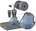 Tillverkningsmetod Fused Deposition Modelling, FDM, bygger ett 3D-objekt lager för lager genom en plasttråd smälts och appliceras genom ett upphettat munstycke.