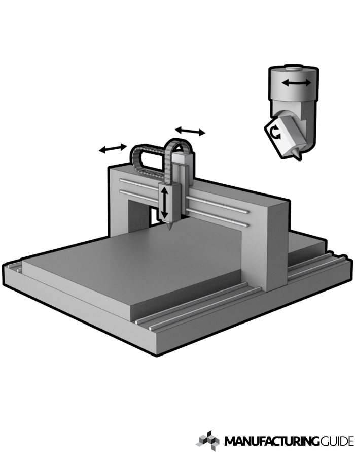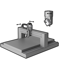 Vid 3D-skärning baserad på portalsystem så tillkommer vanligtvis två till axlar monterade på hållaren där den ena styr vinkeln mot horisontalplanet och den andra rotationen kring z-axeln [2]. Denna lösning används vanligtvis för att skapa fogberedning inför efterföljande svetsning men kan för tex Plasmaskärning nyttjas för att kompensera för den vinkelavvikelse som uppstår pga icke parallella snittytor.