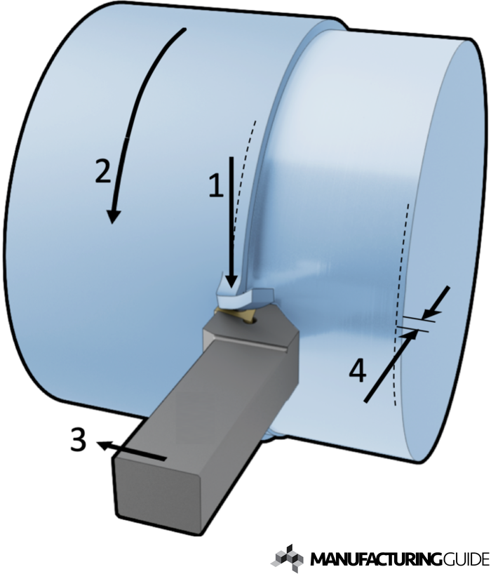 3. Matning (Längdmatning i detta fall. Tvärmatning ifall radiell matning)