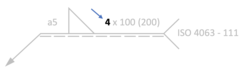 Då två eller fler svetsar lägg på/intill varandra i samma fog anges dessa som flera referenslinjer kopplade till en och samma hänvisningslinje