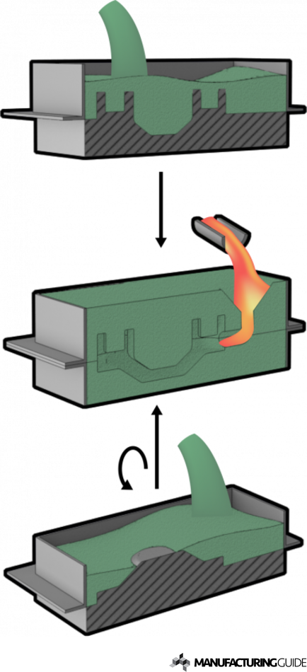 Gjutmetod där en form skapas av kiseldioxid och gel som bränns två gånger för att skapa gynsamma microsprickor och minimera orenheter. Beskrivning Hur fungerar metoden Två gjutformar tillverkas genom att nyttja formar med inverterade modeller av eftersträvad detalj. Rund formen placeras en ram, så kallad flaska, för att hålla blandningen av kiseloxid och gel på plats. Formarna fylls och vibreras för att omsluta modellen. Då blandningen har övergått till fast form så lyfts gjutformen ur huvudformen och bränns med blåslampa för att avlägsna kontamineringar samt för att bilda microspricor i ytan av gjutformen. Dessa sprickor är eftersträvade då de tillåter gaser att undgå från smältan samtidigt som den smälta metallen inte kan tränga igenom sprickorna. Formerna bränns därefter ytterligare en gång i en ugn för att ta bort resterande kontamineringar. Ifall detaljen har ihåligheter skapas så kallade kärnor som sedan placeras i gjutformen. Formen förses även med inlopp, stigarrör och andra detaljer som krävs för att smältan effektivt skall kunna fylla detaljen. Formhalvorna moteras sedan samma till en fullständig form och förvärms innan den fylls med smält metall. Efter att metallen stelnat frigörs den från formen. Metall Metaller är kemiska föreningar där atomerna är ordnade på ett regelbundet sätt vilket ger de typiska dragen för en metall. Läs mer Shawgjutning Processfilmer