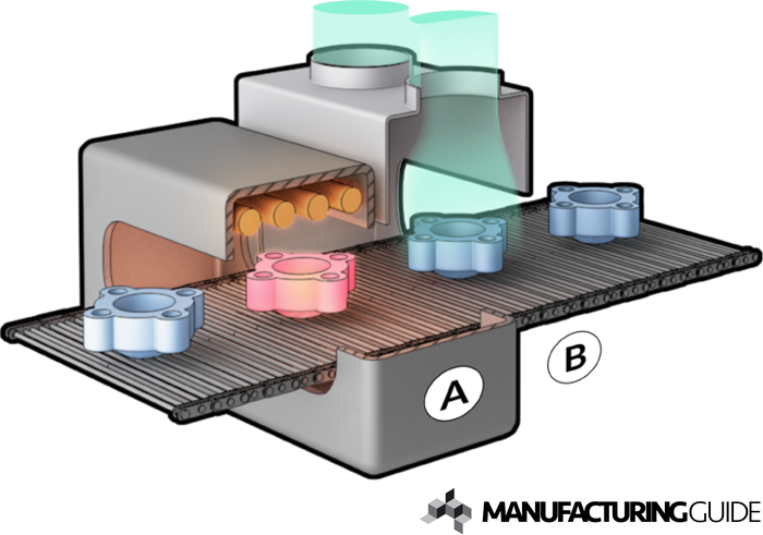 Materialegenskapsförändrande bearbetning där materialet hettas upp för att därefter snabbt kylas ned med tryckluft för att härdas. Beskrivning Hur fungerar metoden A: Materialet först upp till en temperatur som ligger ovanför materialets eutektoida temperatur, vilket vanligtvist ligger mellan cirka 800-900°C för att få en perlitstisk struktur. Temperaturen beror på sammansättningen hos legeringen. B: Materialet snabbnedkyls sedan ned till en relativt låg temperatur med hjälp av tryckluft så att det bildas martensit i materialet. Inom gruppen släckhärdning finns olika släckmedier som ger olika grader av härdning gällande hårdhet och härddjup. Hårdhet En metalls motstånd mot lokal plastisk deformation som uppstår vid tex repning eller skärande bearbetning. Läs mer Släckhärdning med tryckluft