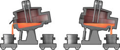 Framställning av flytande stål genom att smälta stålskrot i en ljusbågsugn. Beskrivning Hur fungerar metoden Stålskrot chargeras (laddas) i en ljusbågsugn tillsammans med slaggbildare. I ugnsutrymmet finns grafitelektroder, som matas med en hög trefasväxelström, vilket alstrar en ljusbåge mellan dessa och skrotladdningen. Värmen som utvecklas gör att skrotet gradvis smälter. En slagg bildas som bland annat skyddar ugnens väggar mot nedbrytning. Kraftig omrörning sker då skrotet smälter. Vid tappning av ljusbågsugn så lutas ugnen ena hållet för att tappa slagg och sedan andra hållet för att tappa ut stålet. Vissa ugnar har istället tapphål genom botten direkt ned till en skänk. Därefter går smältan vidare till Skänkmetallurgi för framställning av stål eller till en AOD-koverter för framställning av rostfritt stål. Översikt - Framställning av rostfritt stål Ljusbåge Kontinuerlig luftburen elektrisk urladdning Läs merRostfritt stål Stålsorter som har en passiv film vid ytan vilket bidrar till skydd emot aggressiva miljöer samt korrosion. Läs merSkänk Behållare för flytande metall. Läs merSkänkmetallurgi Behandling av flytande stål i en ugn för rening, komplettering, och finjustering innan gjutningen. Kallas även för sekundär metallurgi. Läs merSlaggbildare Slaggbildare används för att underlätta bildande av en slagg med önskade egenskaper, som har möjlighet att separera oönskade ämnen från metallbadet. Läs merStålskrot Återvunnen stål som används vid skrotbaserad ståltillverkning. Tappning av ljusbågsugn Vid tappning av ljusbågsung så lutas hela ugnen åt ena hållet för att tappa slagg och sedan åt andra hållet för att tappa smältan. Smältning med ljusbågsugn Processfilmer