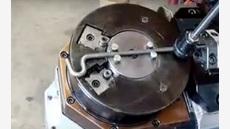 Trådbockning med standardverktyg bearbetar metalltråd genom att stegvis mata fram och bocka tråden med standardverktyg. Beskrivning Hur fungerar metoden Trådbockning med standardverktyg utförs genom att arbetsstycket, som består av en metalltråd [1], mats fram från en spole genom den kluvna dynan [2] med en ytterform som styr bockdiametern. Det roterande bockverktyget [3] bockar tråden runt dynan vilket resulterar i plastisk deformation. Därefter matas tråden fram till nästa bockningsposition. Hela bockstädet [4] kan roteras runt trådens axel och möjliggör på så sätt bockning i alla riktningar. Genom att mata fram tråden mot ett vinklat verktyg kan större radier skapas eller fjädrar "spinnas". Färdig detalj frigörs genom att tråden klipps av på önskat ställe. Många bockningsmaskiner kan växla mellan olika uppsättningar av bockverktyg för att kunna variera bockradien eller möjliggöra andra komplexa bockningar. Vissa leverantörer tillhandahåller denna metod med glödgad tråd där detaljen genomgår härdning direkt efter bockningstempot. Plastisk deformation Formförändring av material genom att lägga på en så pass stor kraft att den elastiska förmågan överskrids och den inre strukturen förskjuts. Efter att kraften avlägsnas sker en viss återfjädring för de flesta material. Trådbockning med standardverktyg Processfoton Processfilmer Produktexempel Trådbockning Berörda tillverkningsmetoder Trådbockning med standardverktyg Excenterpressning - Singelmatad Leverantör Borggårds Bruk För- & Nackdelar I jämförelse med alternativa metoder Hög automatiseringsgrad Kontinuerlig produktion Stabil process