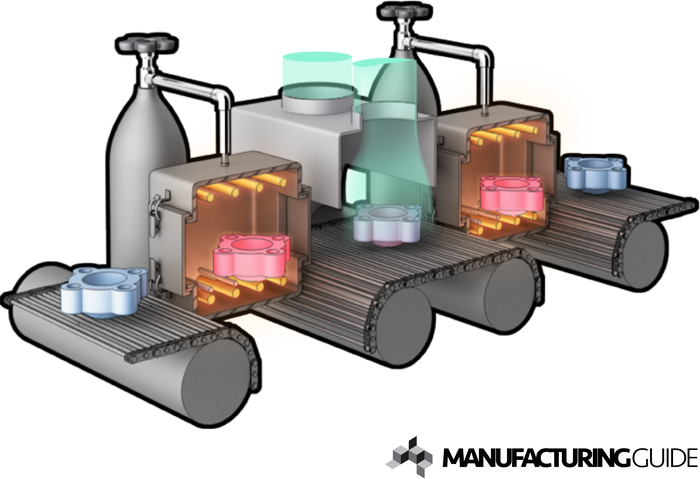 Materialegenskapsförändrande bearbetning där materialet under lågt tryck omges av en metan -propan eller acytylengas och värms upp. Via diffusion ökas kolhalten vid ytan och slutligen genomgår materialet släckning. Beskrivning Hur fungerar metoden A. Materialet värms i en kolrik gas och under ett lågt tryck upp till en temperatur på upp till 1000 grader Celsius beroende på materialets sammansättning. Vanligtvis används acetylen som vid processen bryts ned till kol och diffunderar in i materialet. Hålltiden beror på hur pass djupt ned i materialets yta som kolet önskas diffundera ned till, men är oftast kortare än vid vanlig uppkolning. B. Materialet genomgår sedan en släckning så att materialets yta på grund av det tillförda kolet härdas, samtidigt som den inre delen förblir lika seg som innan bearbetningen. Materialet anlöps till sist för att få den önskade hårdheten hos materialets yta. Vakuumuppkolning Processfilmer
