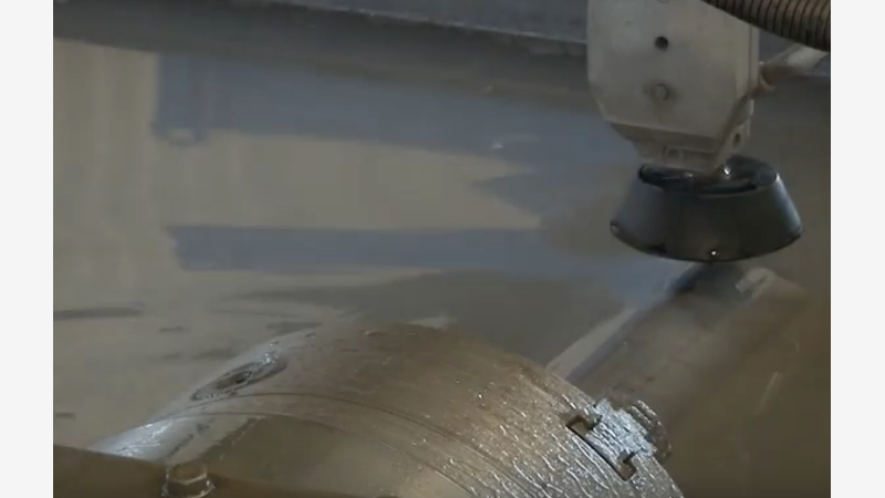 3D vattenskärning skapar ett skärsnitt i välvda ytor genom nötning från högtrycks-vattenstråle uppblandad med abrasivt medel.