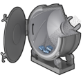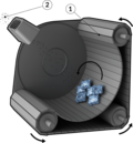 Tillverkningsmetod Blästrande bearbetning där arbetsstyckena tumlar runt i en roterande trumma i en kammare samtidigt som de beskjuts med blästermedel.